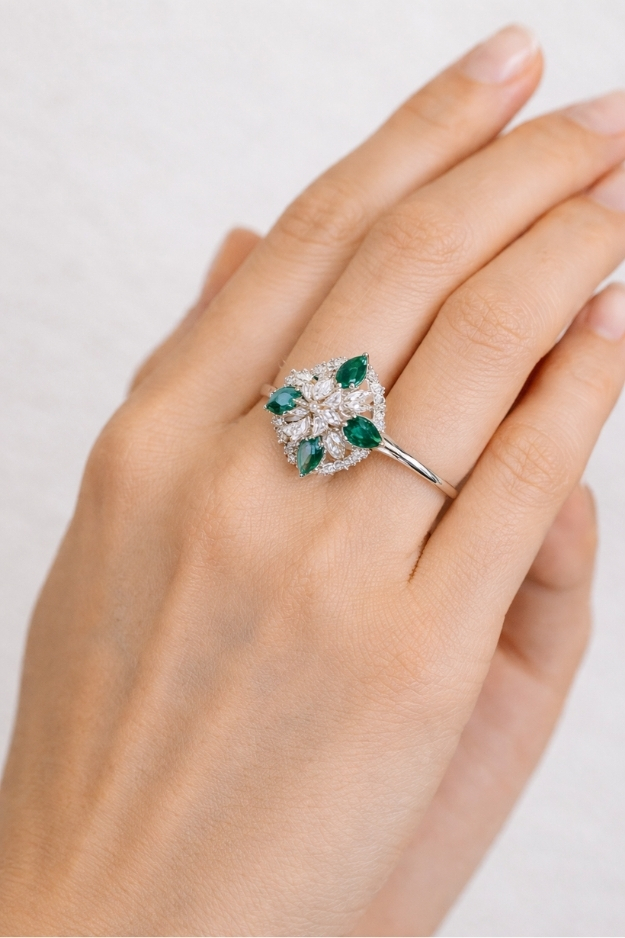 PREMIUM EXCLUSIVE 925 SILVER ROSE GOLD POLISH BLUE COLOUR STONE FLOWER RING – SIZE 9