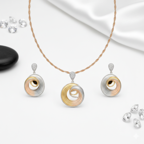 EXCLUSIVE THREE TONE ELEGANT SPIRAL PENDANT SET