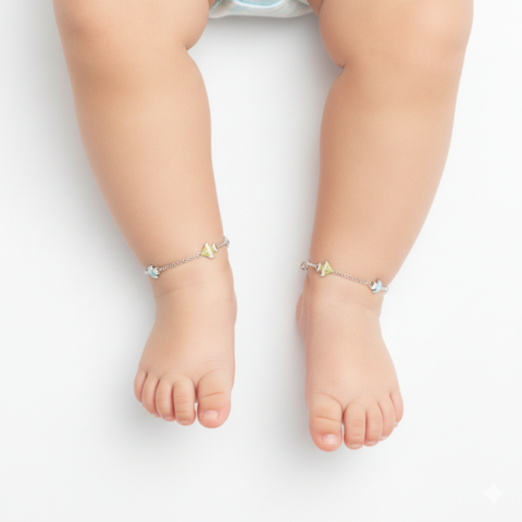 PREMIUM 925 SILVER COLOUR FISH ENAMEL CUTE BABY ANKLET
