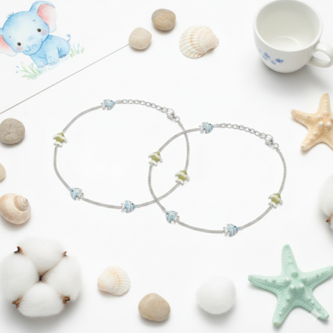 PREMIUM 925 SILVER BABY ELEPHANT ENAMEL ANKLET