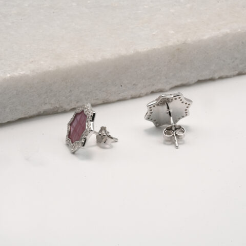 PREMIUM 925 SILVER CUSHION CUT RUBY DIAMOND STUDS