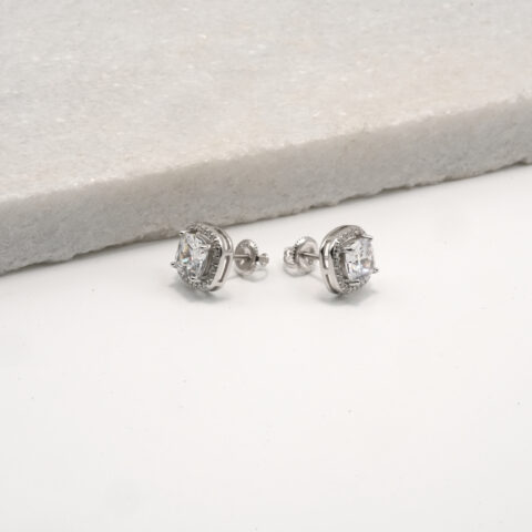 PREMIUM 925 SILVER CUSHION CUT DIAMOND STUDS