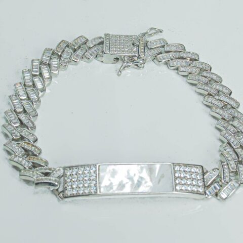 EXCLUSIVE BAGUTTE STONE WITH MOP 925 SILVER MEN’S WHITE POLISH BRACELETE