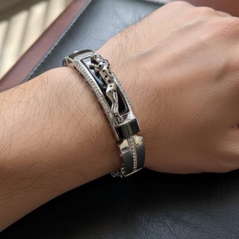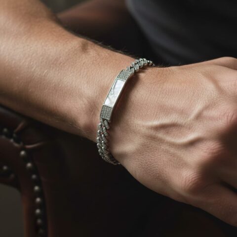 EXCLUSIVE BAGUTTE STONE WITH MOP 925 SILVER MEN’S WHITE POLISH BRACELETE