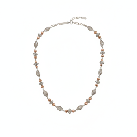 EXCLUSIVE 925 SILVER ROSE GOLD POLISH TWO TONE ELEGEANT NECKLESS