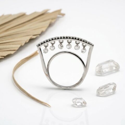 PREMIUM 925 SILVER HANGING STONE UNIQUE RING – SIZE 19
