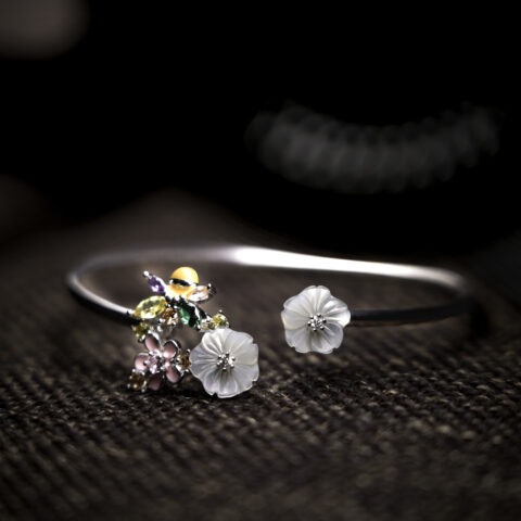 PREMIUM 925 SILVER MOP WITH COLOR STONE FLEXIBLE BRACELET