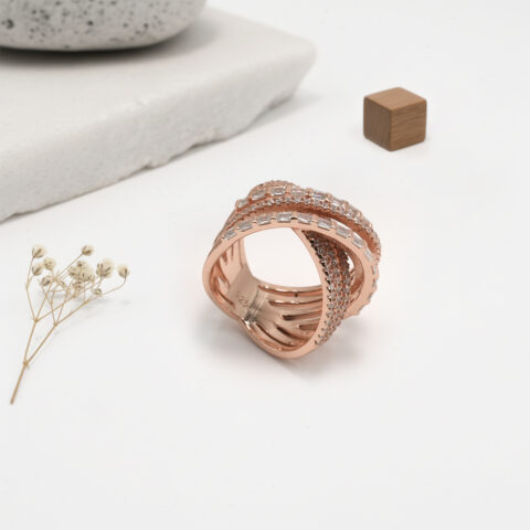 PREMIUM EXCLUSIV 925 SILVER ROSE GOLD POLISH WOMEN’S RING – SIZE 14