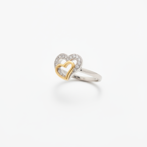 PREMIUM 925 SILVER COUPLE HEART TWO TONE RING – SIZE 13