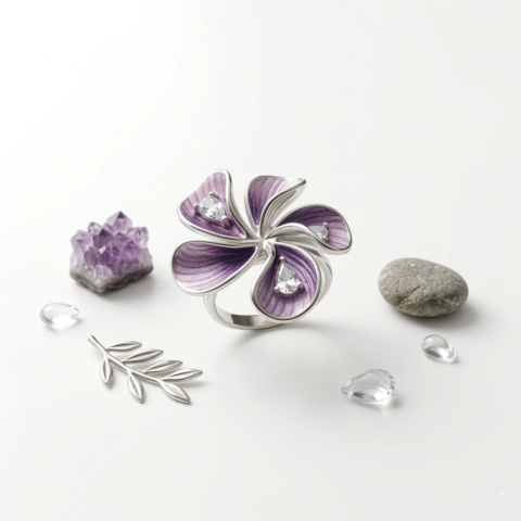 EXCLUSIVE LAVENDER FLOWER BLOOM WOMEN’S RING FREE SIZE