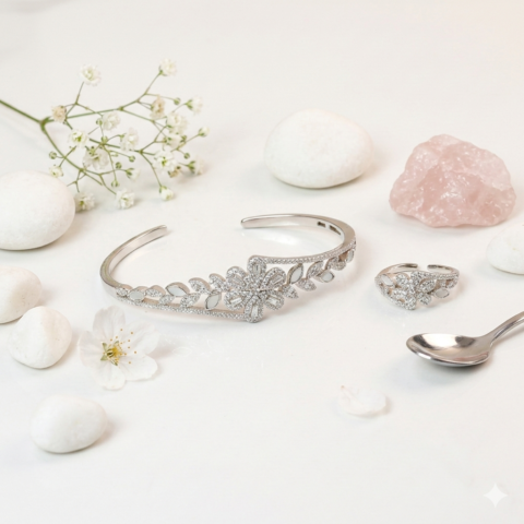 Elegant and timeless, this AARYA Pure 925 Silver Bracelete is crafted from premium quality 925 silver with a smooth, polished finish. Lightweight and comfortable, it is perfect for daily wear as well as special occasions. Wear it alone or stack it with other Bracelete for a graceful look.