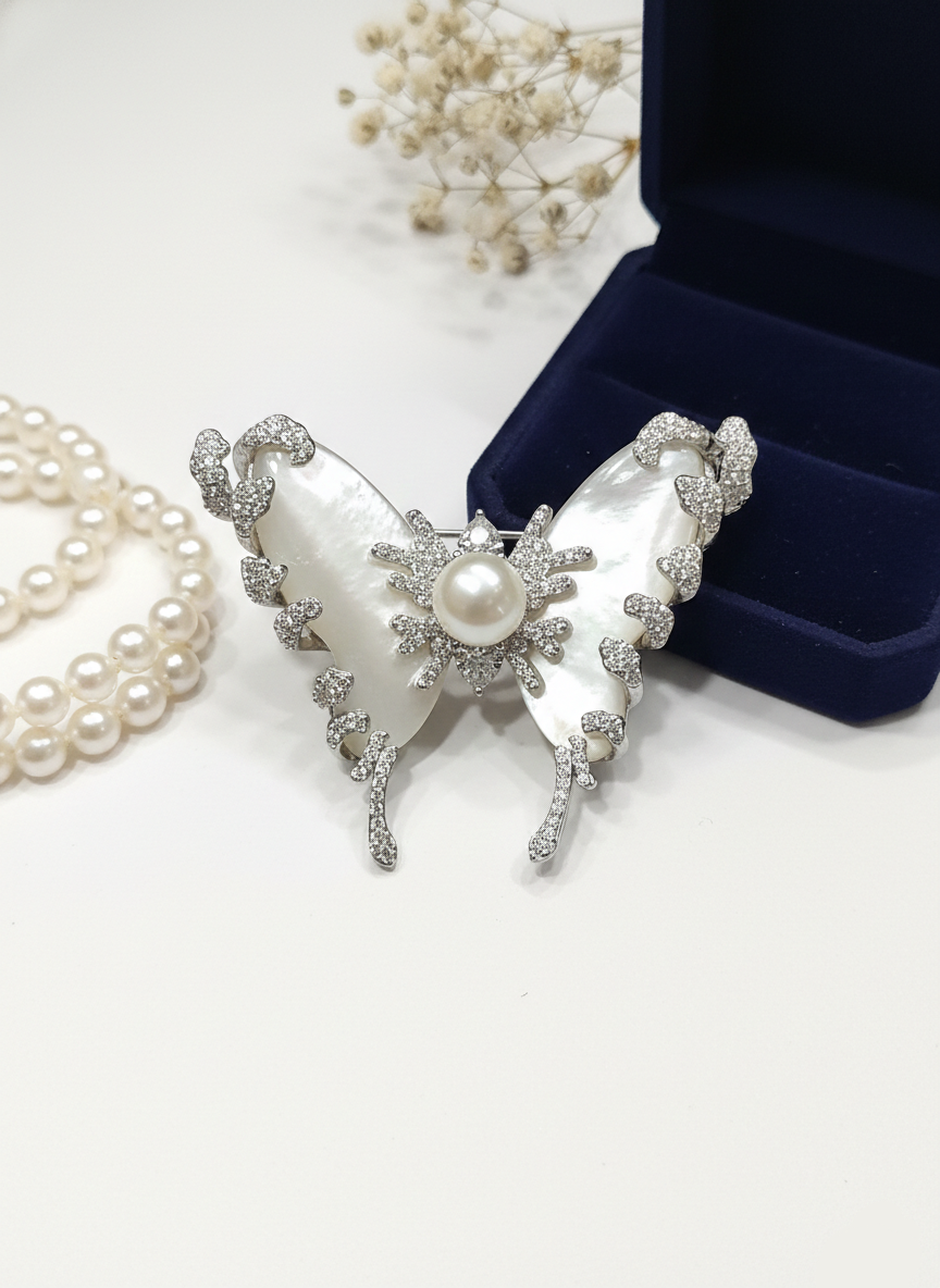 EXCLUSIVE 925 SILVER EMPRESS BUTTERFLY MOP BROOCH