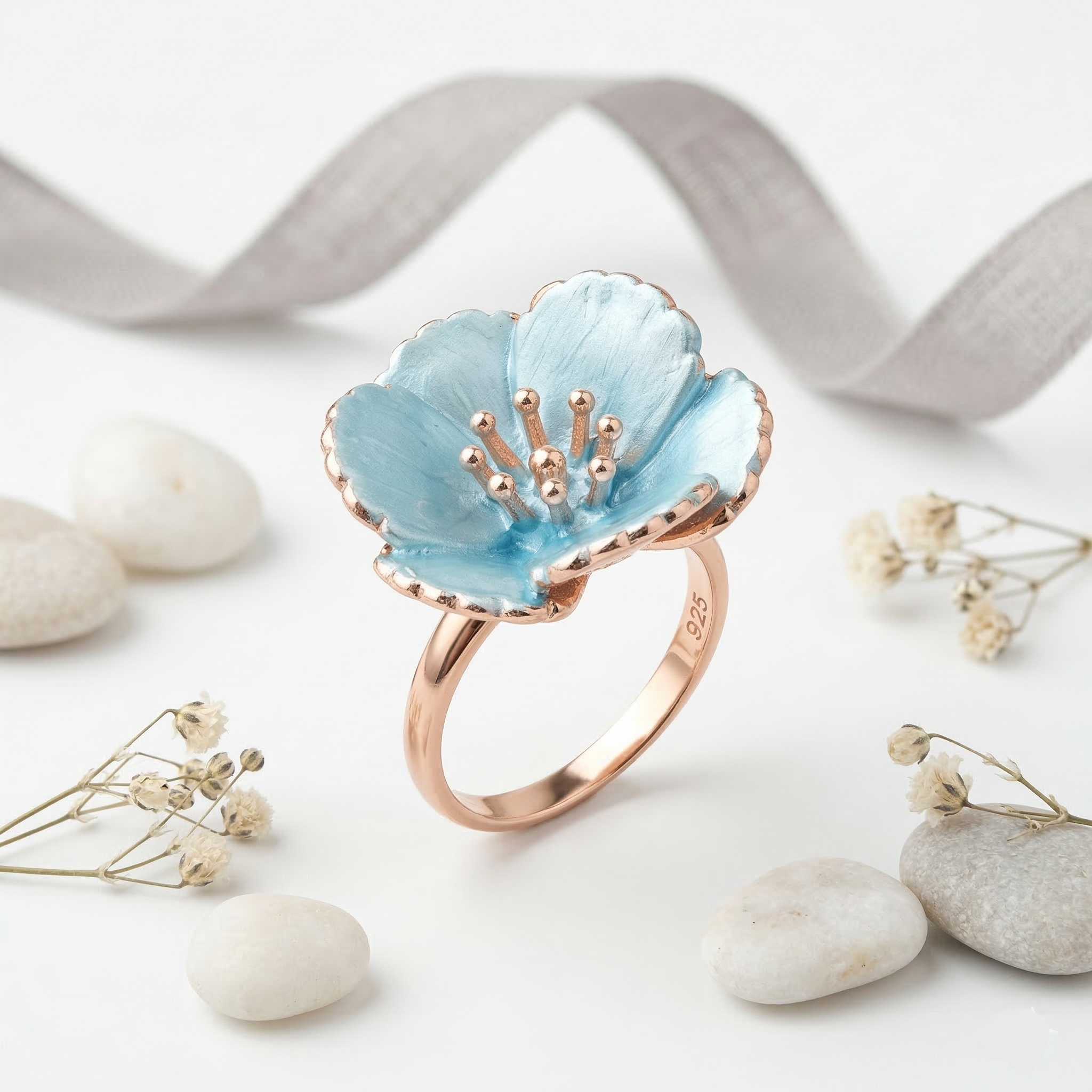 EXCLUSIVE 925 SILVER GOLDEN AQUA BLOSSOM WOMEN’S RING FREE SIZE