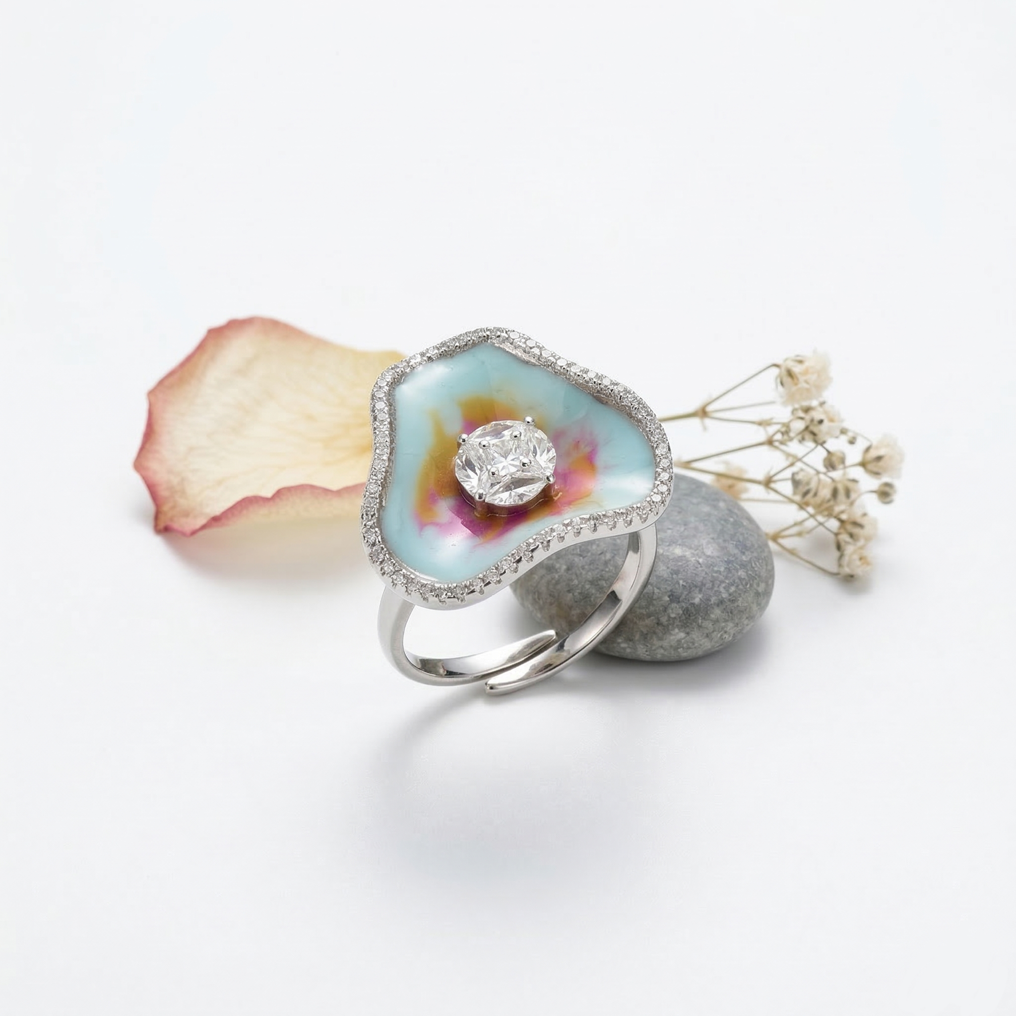 PREMIUM 925 SILVER BRIDAL PASTEL COLOUR STONE RING – FREE SIZE