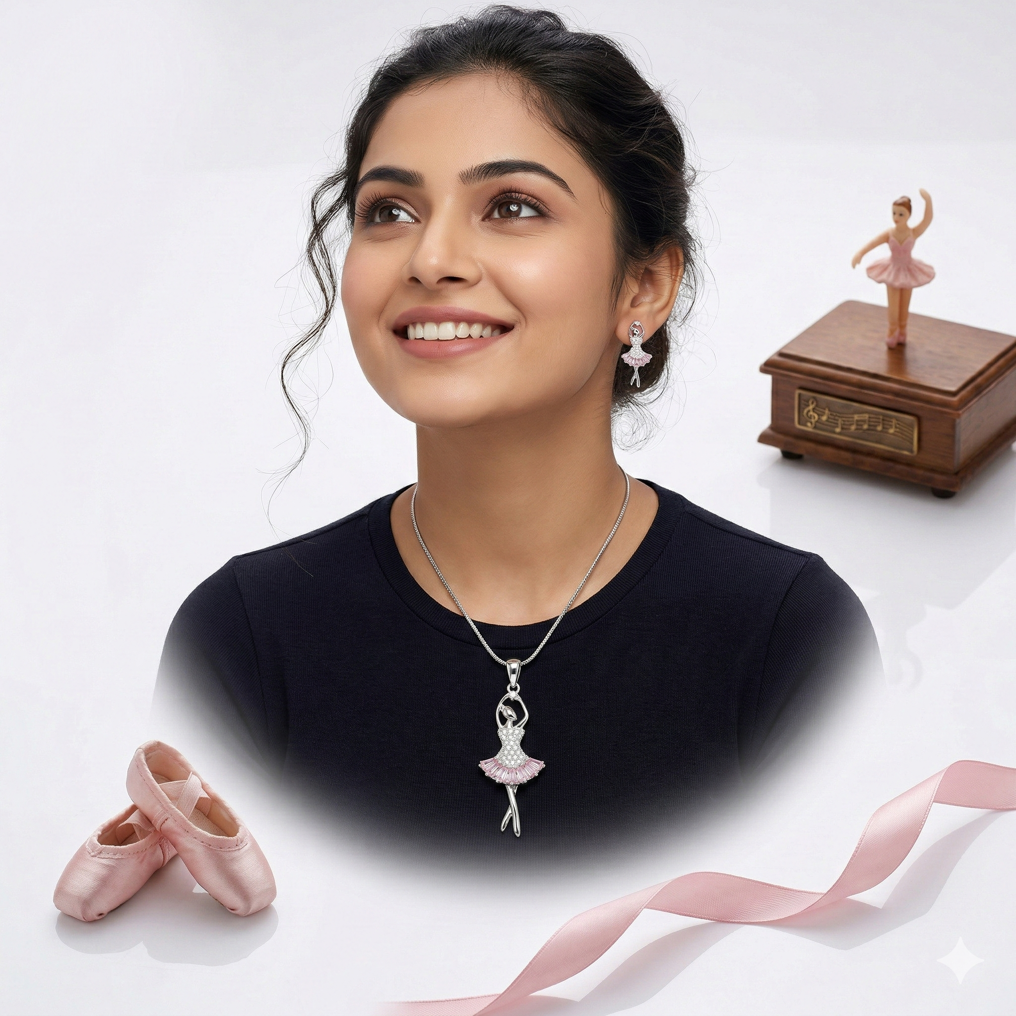 EXCLUSIVE 925 SILVER PINK PIROUETTE DANCING DOLL PENDANT SET