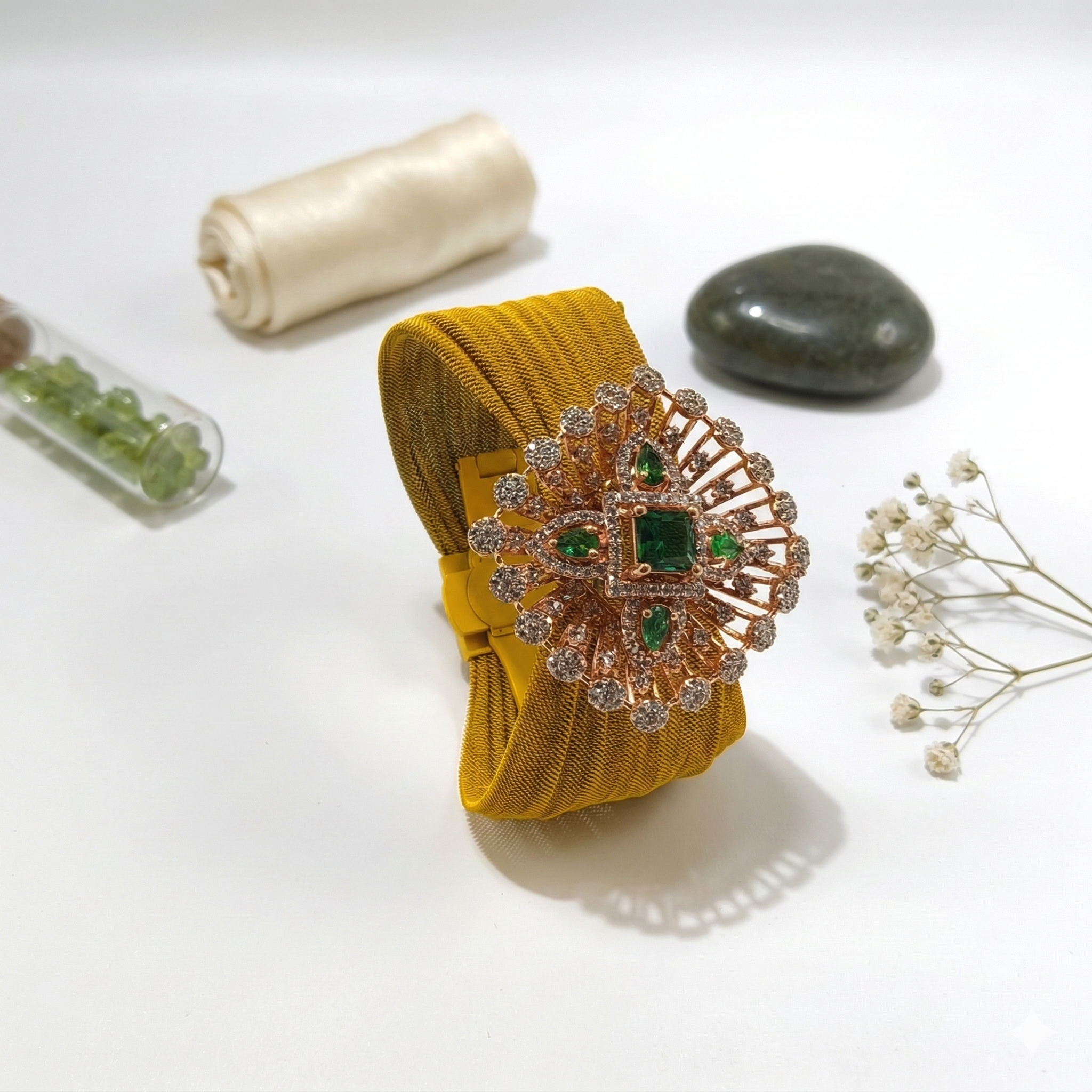 EXCLUSIVE 925 SILVER CUFF YELLOW STRAP BRACELETE