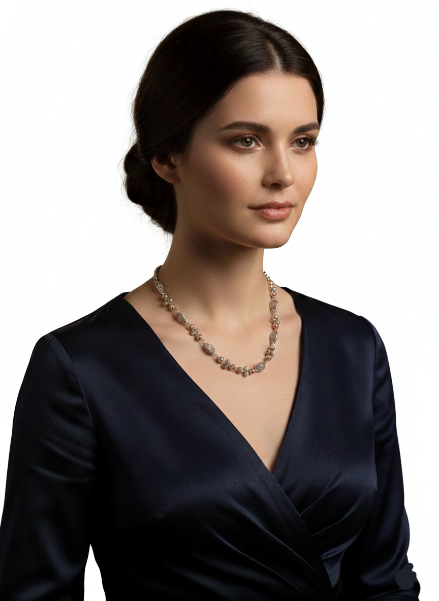 This AARYA Pure 925 Silver Necklace is elegantly crafted to showcase timeless beauty and refined craftsmanship. Made from premium quality pure 925 silver, it features a classic twisted design with a smooth, polished finish that enhances its natural luster. Designed for comfort and long-lasting wear, this necklace is perfect for everyday elegance while also adding a sophisticated touch to festive and special occasion outfits.