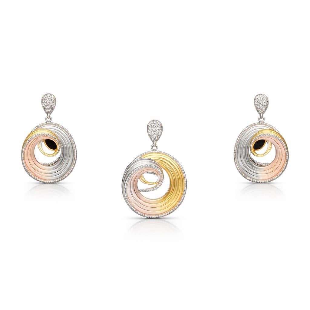 EXCLUSIVE THREE TONE ELEGANT SPIRAL PENDANT SET