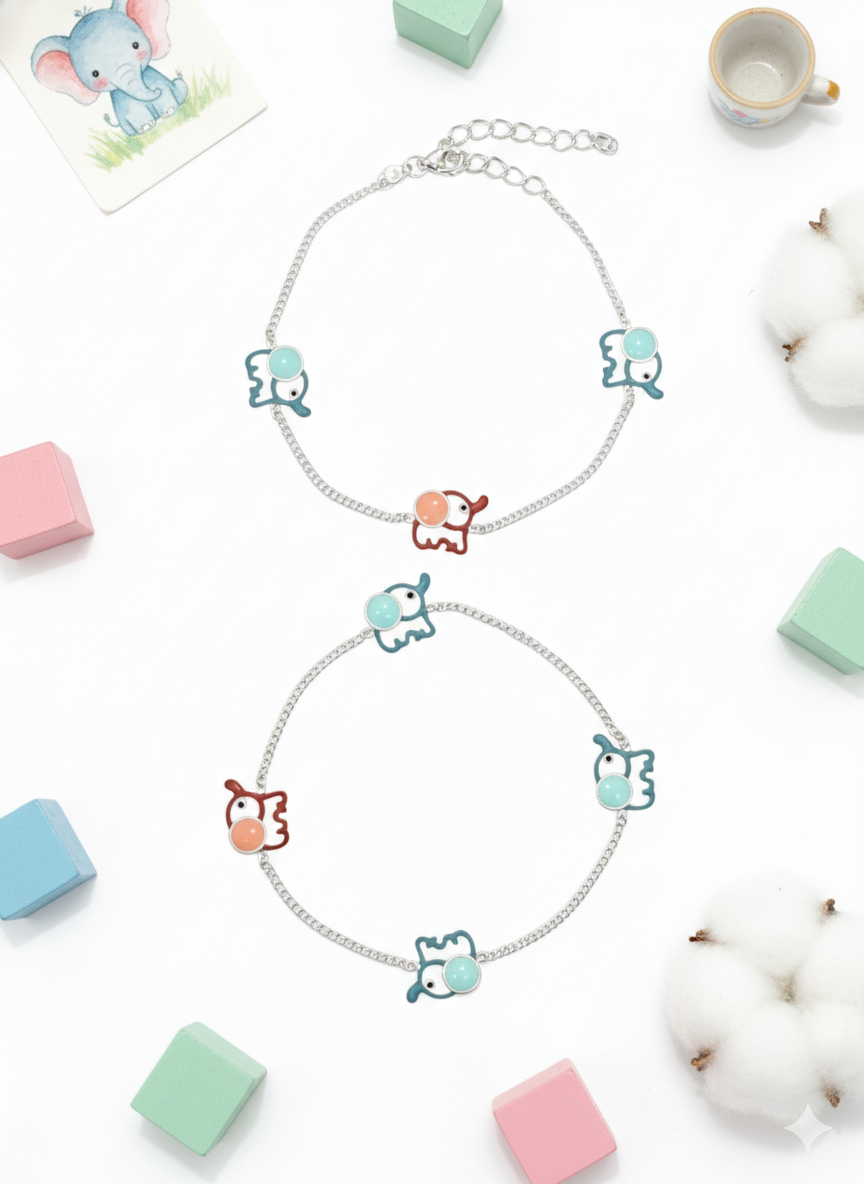 PREMIUM 925 SILVER BABY ELEPHANT ENAMEL ANKLET