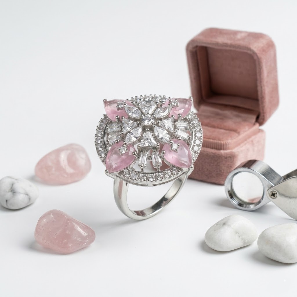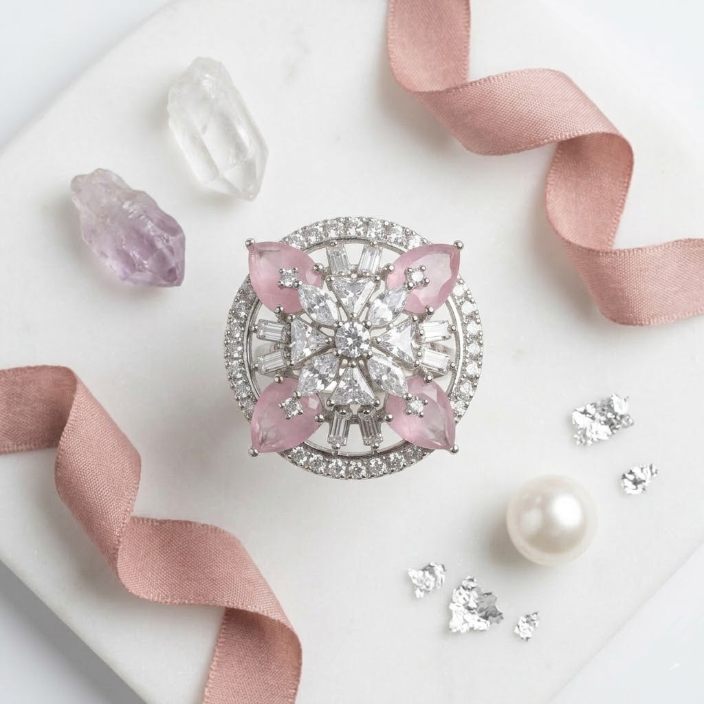 PREMIUM 925 SILVER BRIDAL PINK RING – FREE SIZE