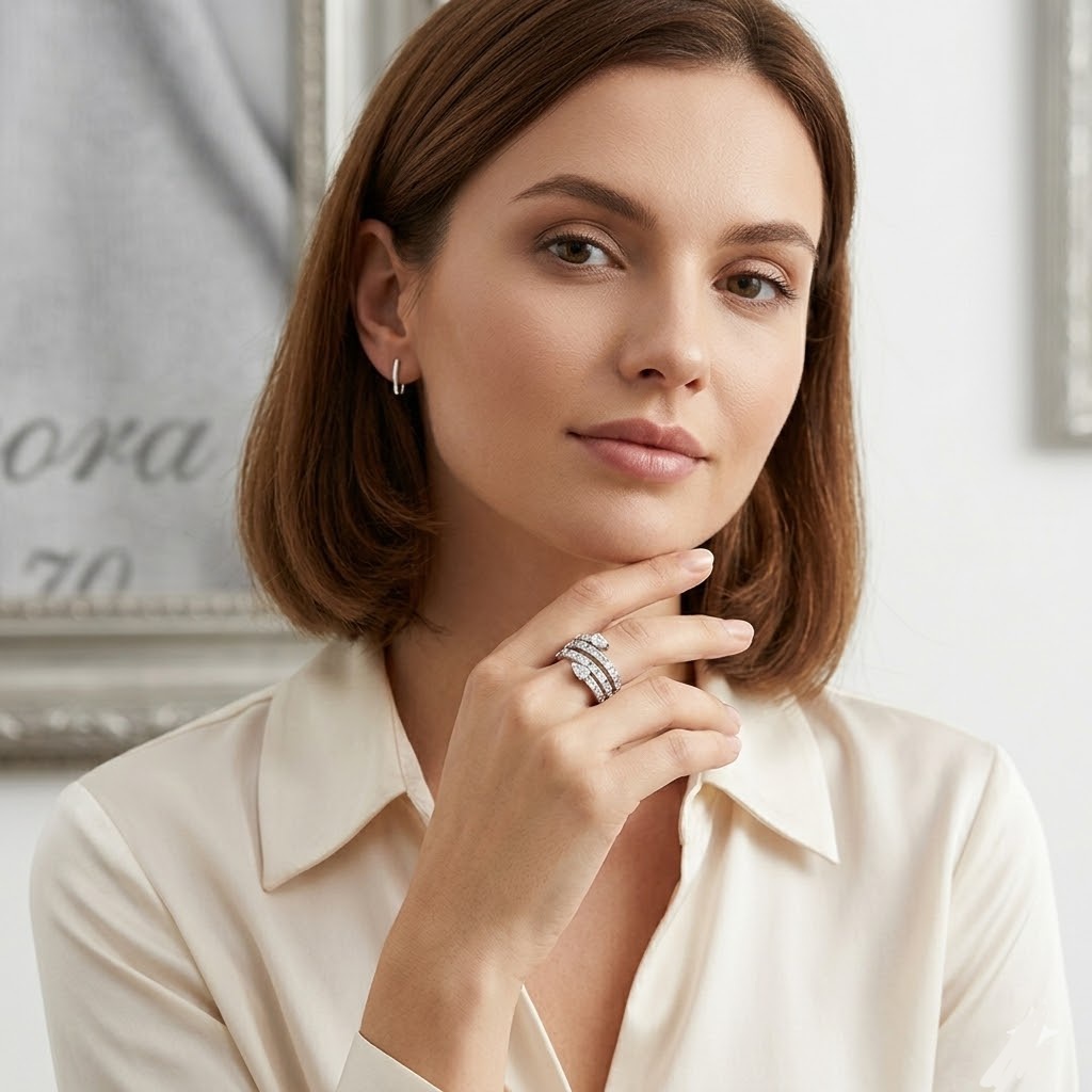 This AARYA Pure 925 Silver Women’s Ring is beautifully crafted to reflect timeless elegance and fine craftsmanship. Made from premium quality silver, it features a smooth, polished finish that enhances its natural shine. Designed for comfort and durability, this ring is perfect for daily wear while also complementing festive and special occasion looks with effortless grace.