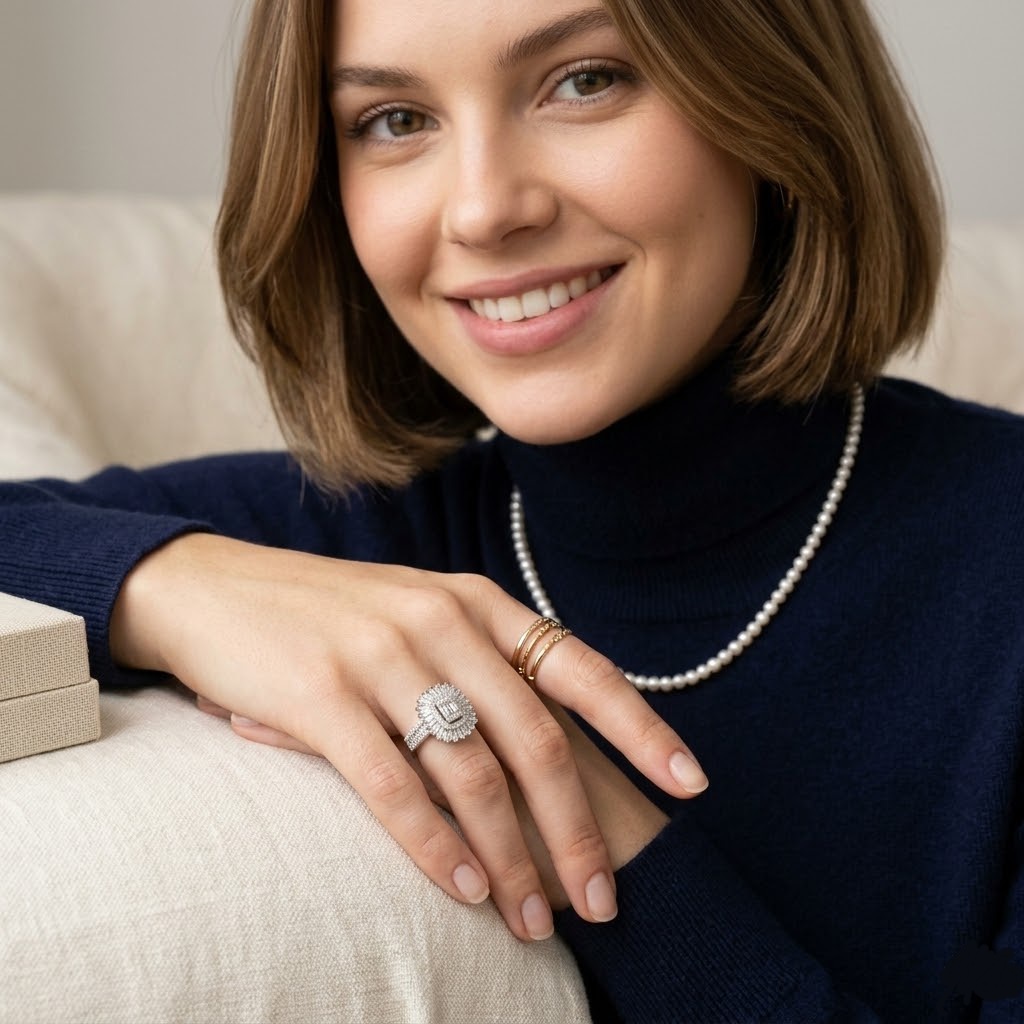 This AARYA Pure 925 Silver Women’s Ring is beautifully crafted to reflect timeless elegance and fine craftsmanship. Made from premium quality silver, it features a smooth, polished finish that enhances its natural shine. Designed for comfort and durability, this ring is perfect for daily wear while also complementing festive and special occasion looks with effortless grace.