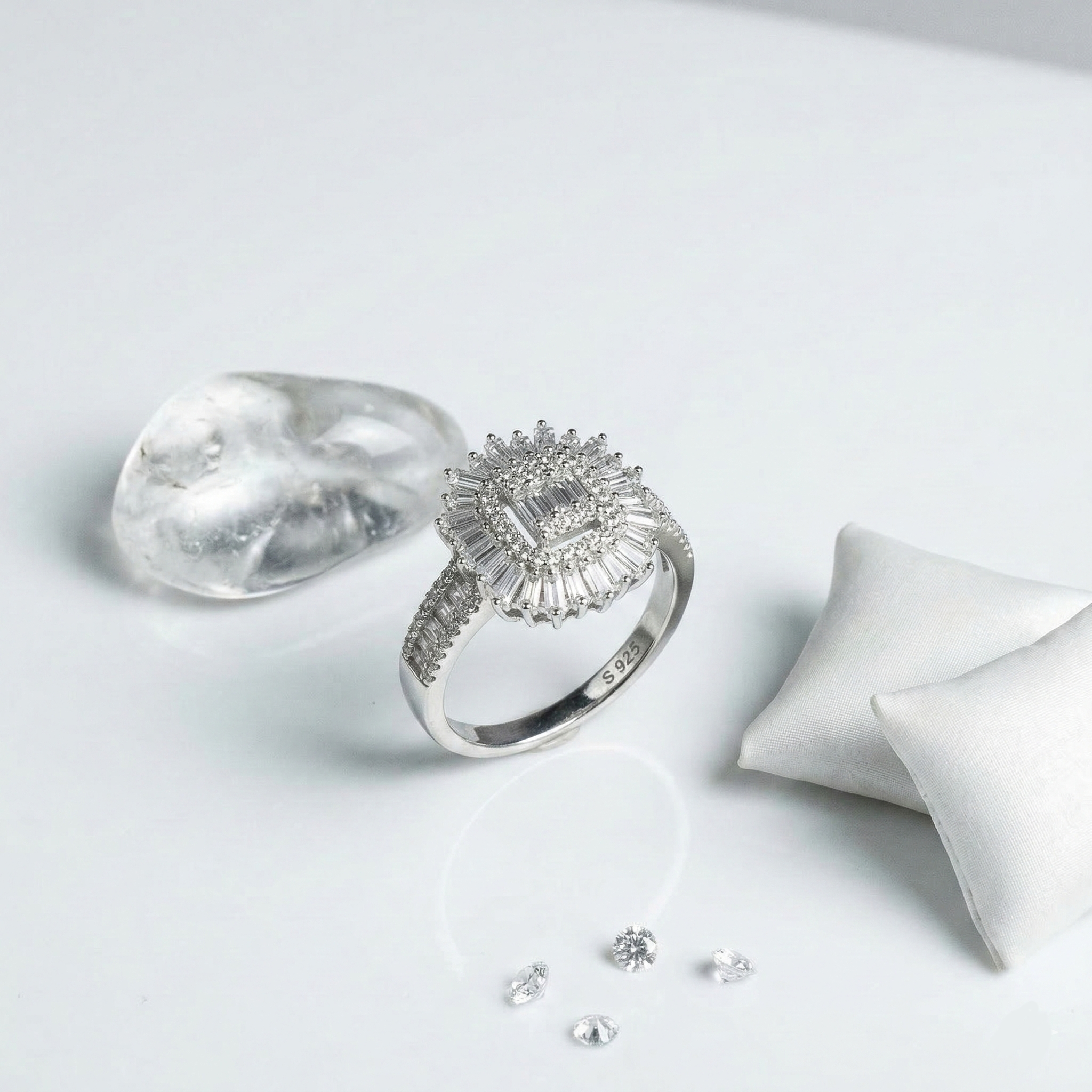 PREMIUM 925 SILVER BRIDAL PINK RING – FREE SIZE