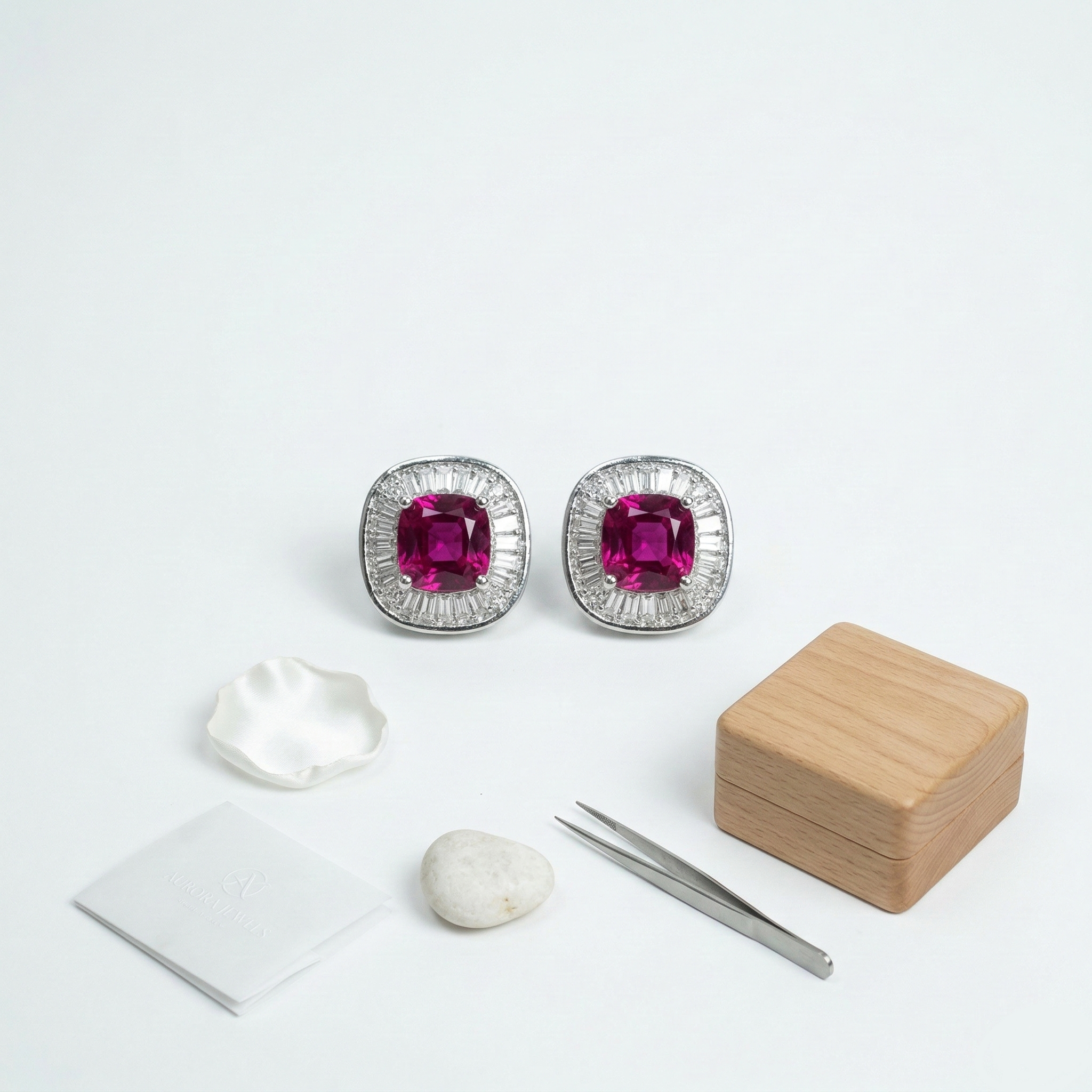 PREMIUM 925 SILVER CUSHION CUT RUBY DIAMOND STUDS