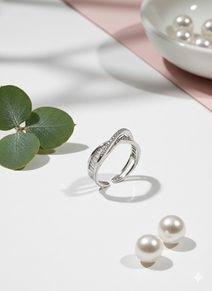 PREMIUM 925 SILVER PEARL MINIMAL RING – FREE SIZE