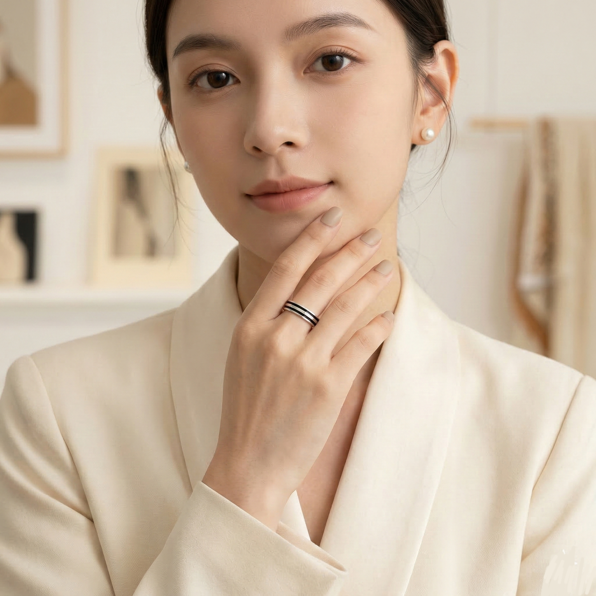PREMIUM 925 SILVER ENAMAL DOUBLE LINE BAND RING SIZE – 20