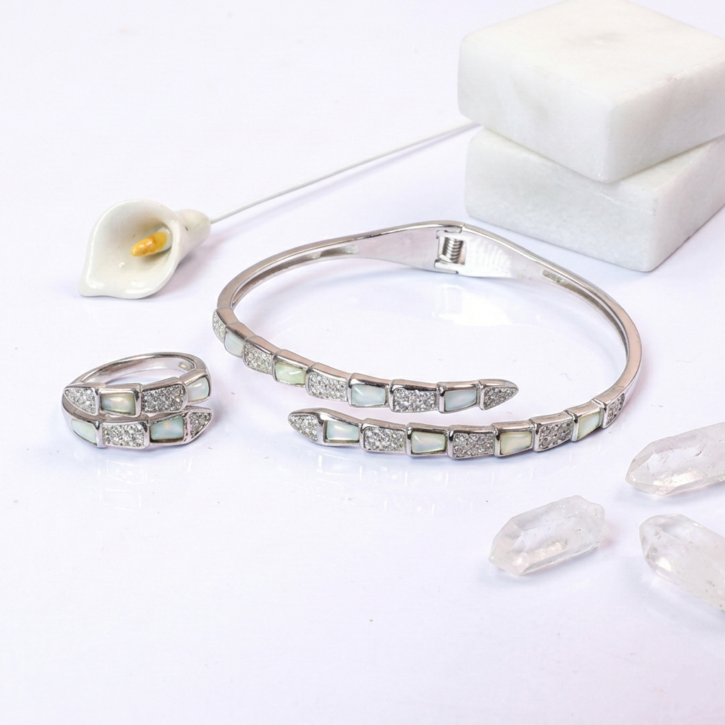 PREMIUM 925 SILVER EXCLUSIVE BRACELETE & RING MOP WITH STONE