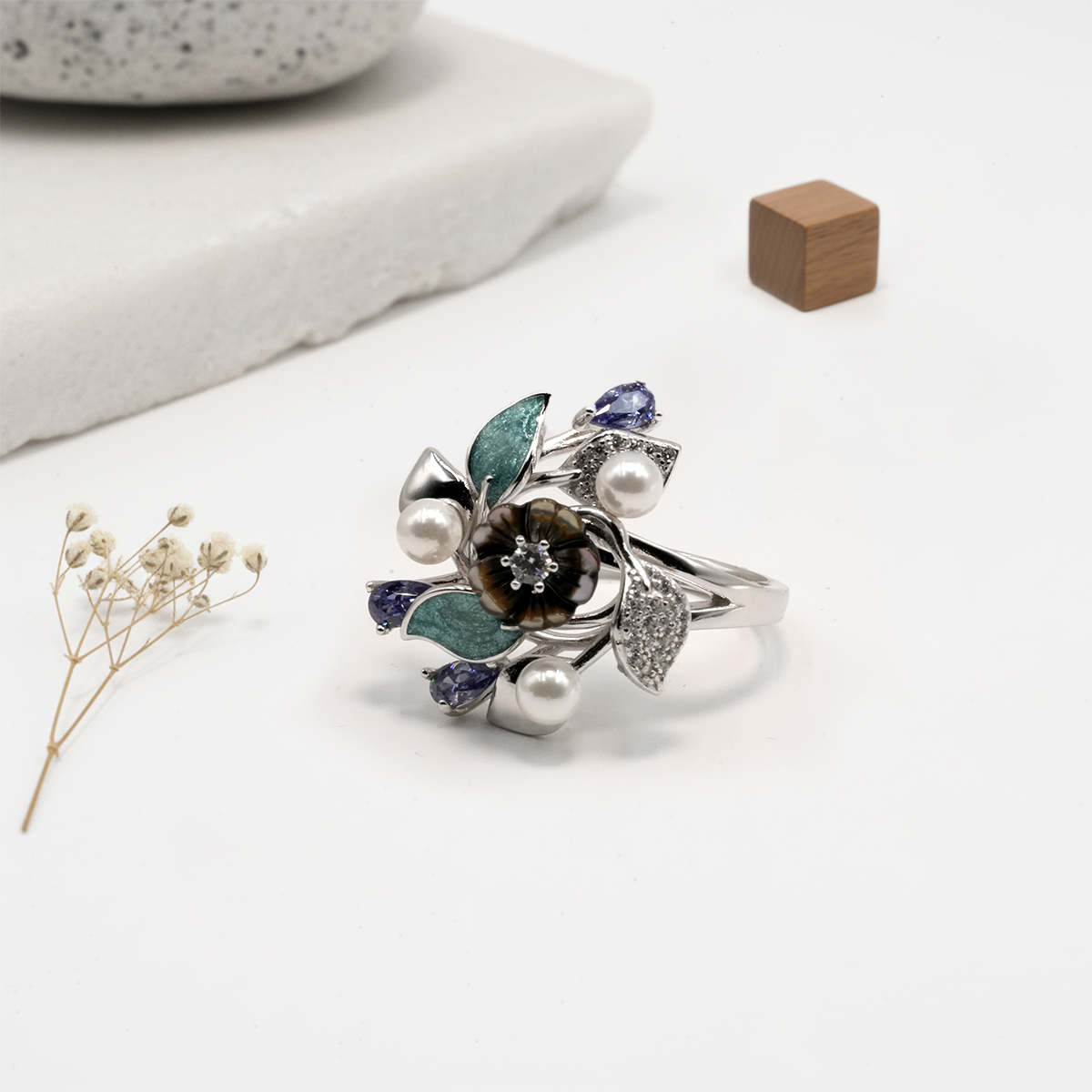 PREMIUM 925 SILVER FLOWER PEARL RING – SIZE 17