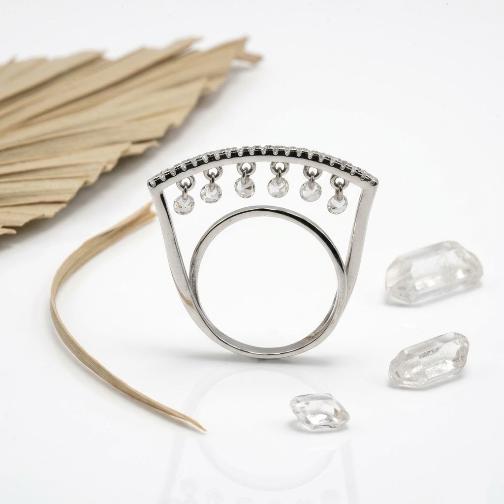 PREMIUM 925 SILVER HANGING STONE UNIQUE RING – SIZE 19