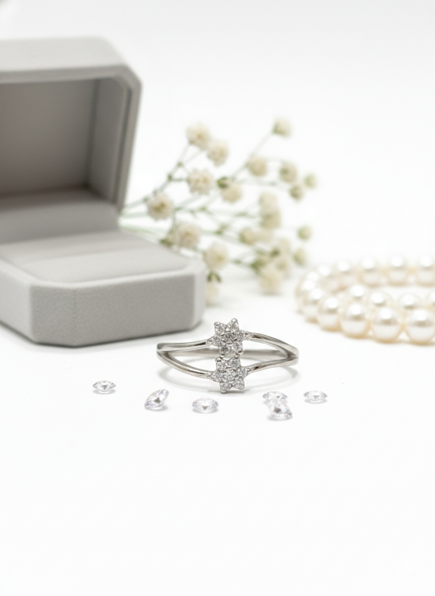 PREMIUM 925 SILVER MINIMAL COUPLE STAR RING – SIZE 12