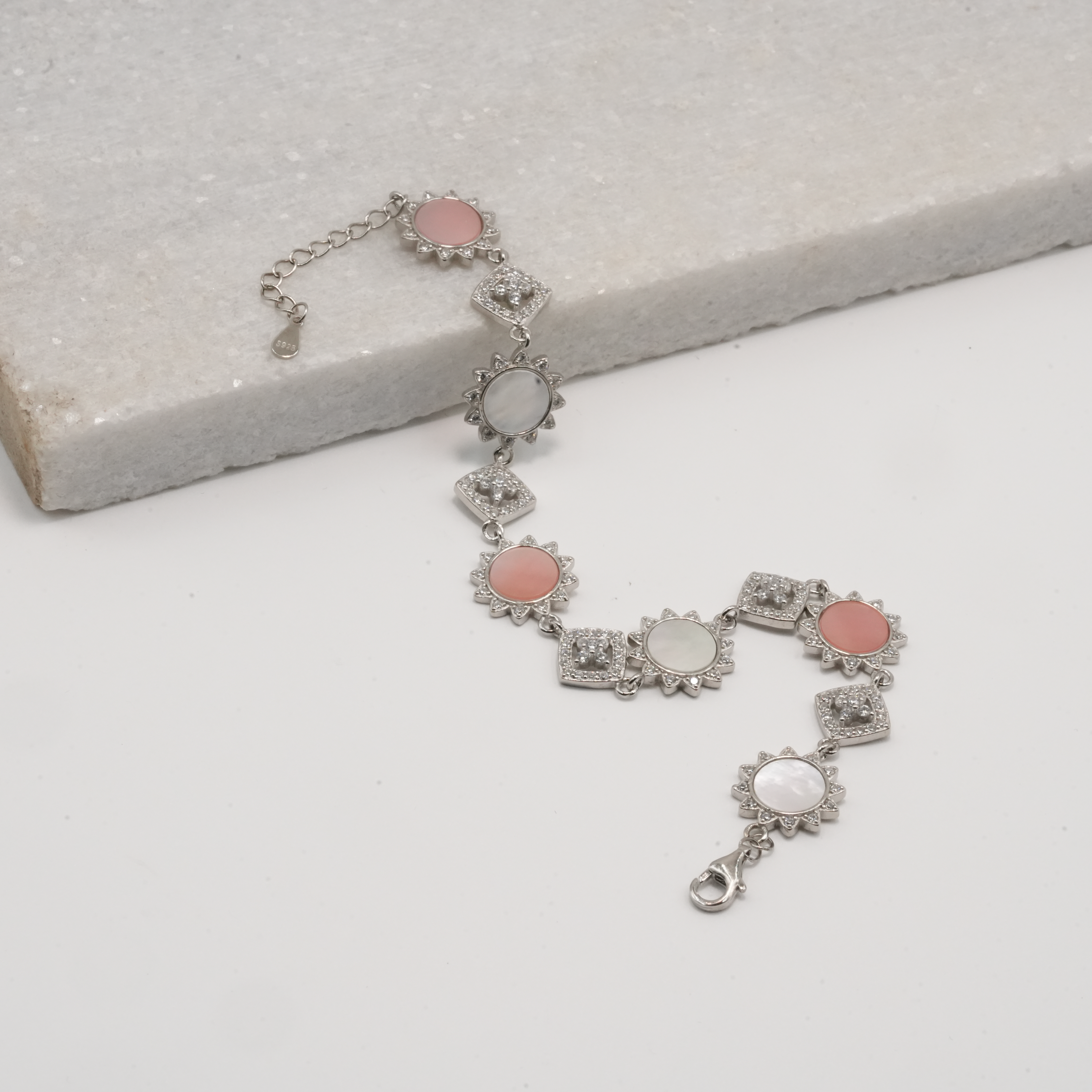 PREMIUM 925 SILVER MOP PINK & WHITE BRACELETE