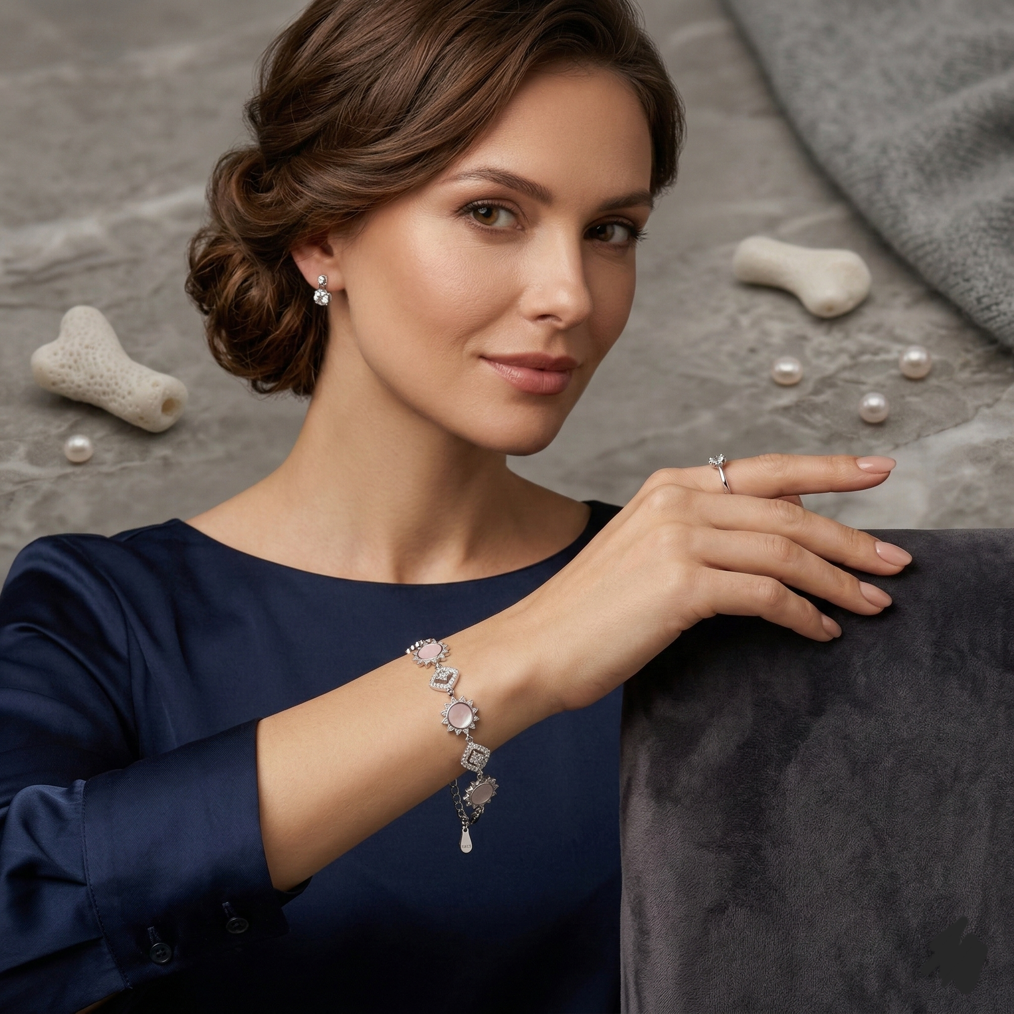 PREMIUM EXCLUSIVE 925 SILVER BRACELETE SOFT PINK STONE