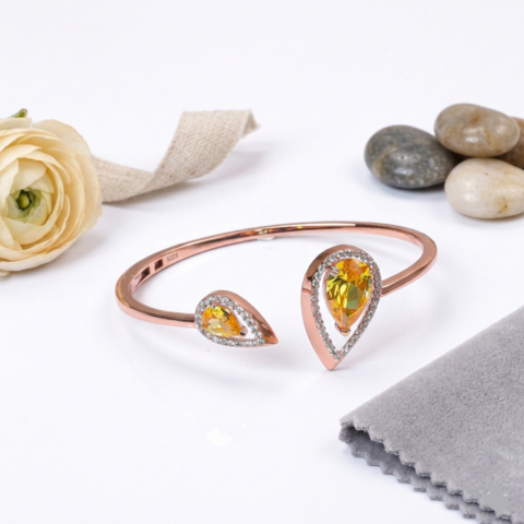 PREMIUM EXCLUSIVE 925 SILVER BRACELET WITH ROSE GOLD POLISH YELLOW STONE
