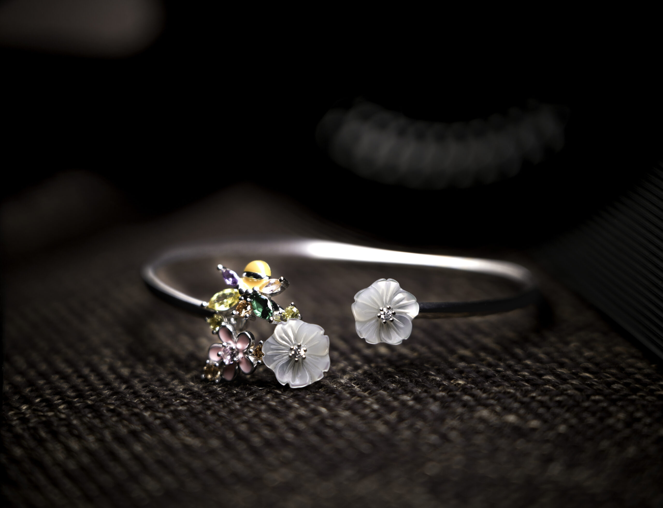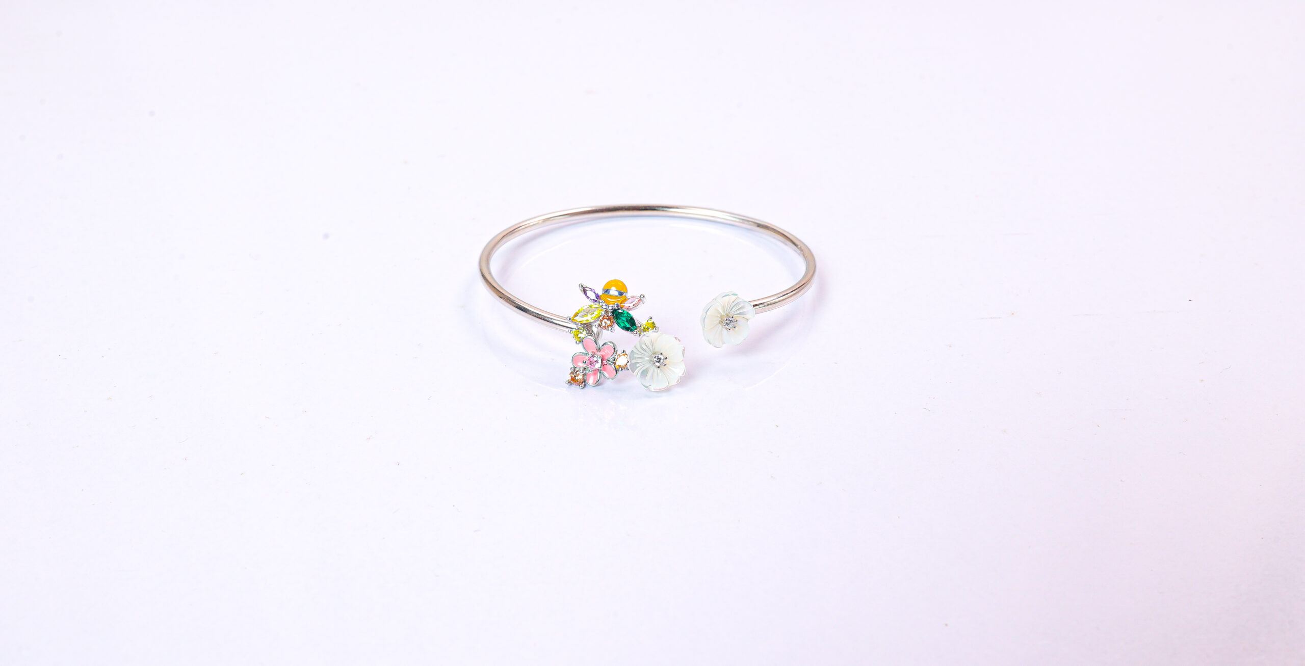 PREMIUM 925 SILVER MOP WITH COLOR STONE FLEXIBLE BRACELET
