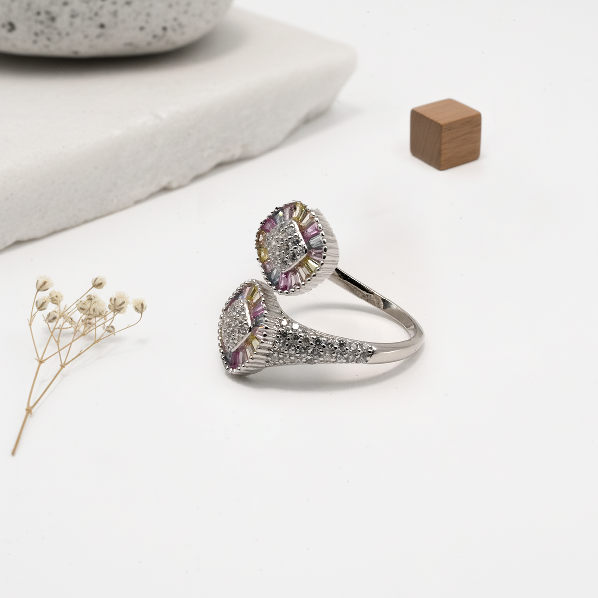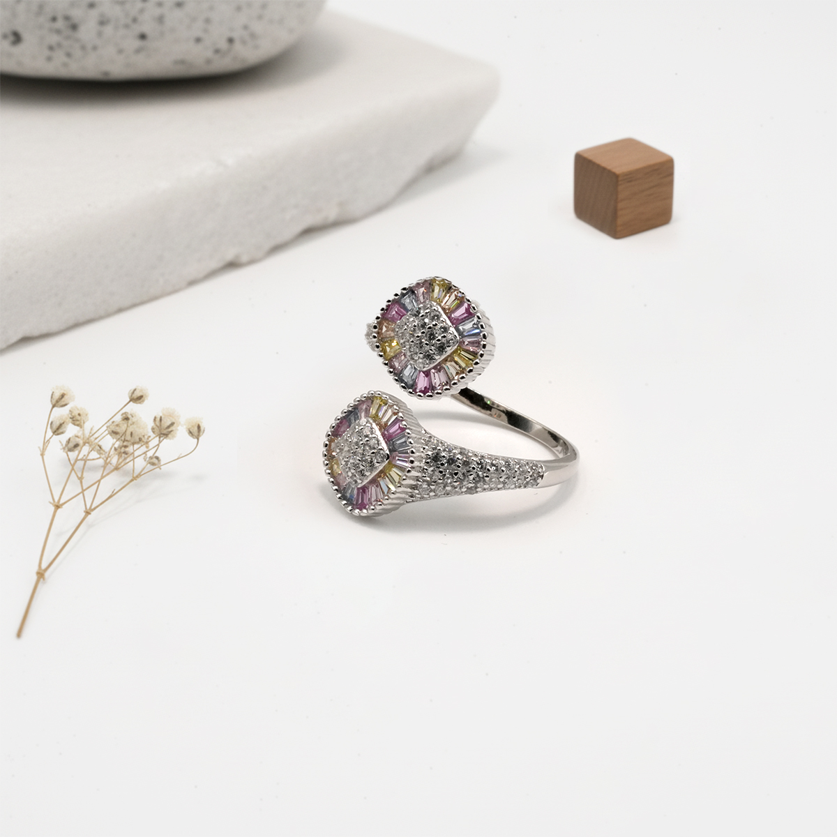 PREMIUM 925 SILVER MULTI COLOR STONE RING – SIZE FREE