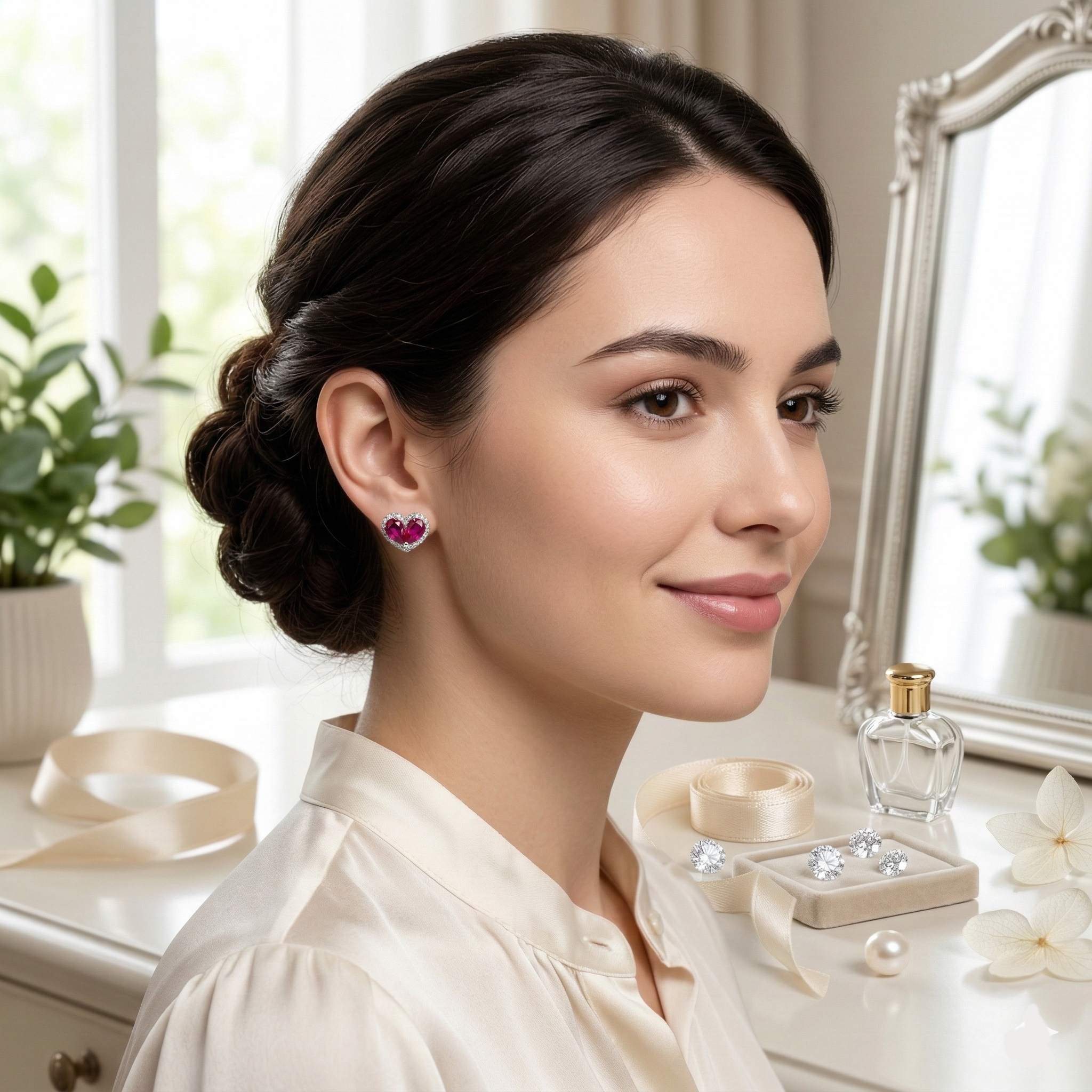 PREMIUM 925 SILVER RUBY ETAL STUDS