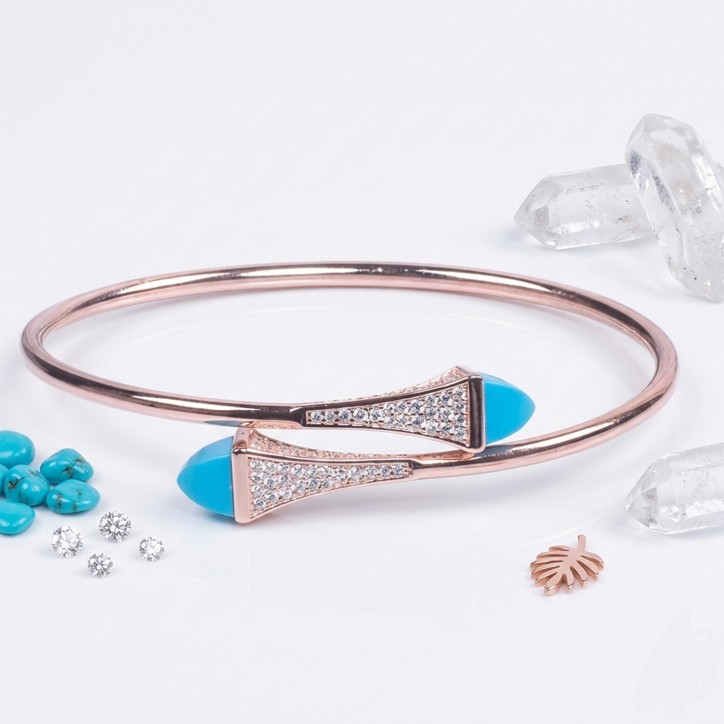 Be the first to review “PREMIUM 925 SILVER ROSE GOLD POLISH EXCLUSIVE FIROZA STONE BRACELET”