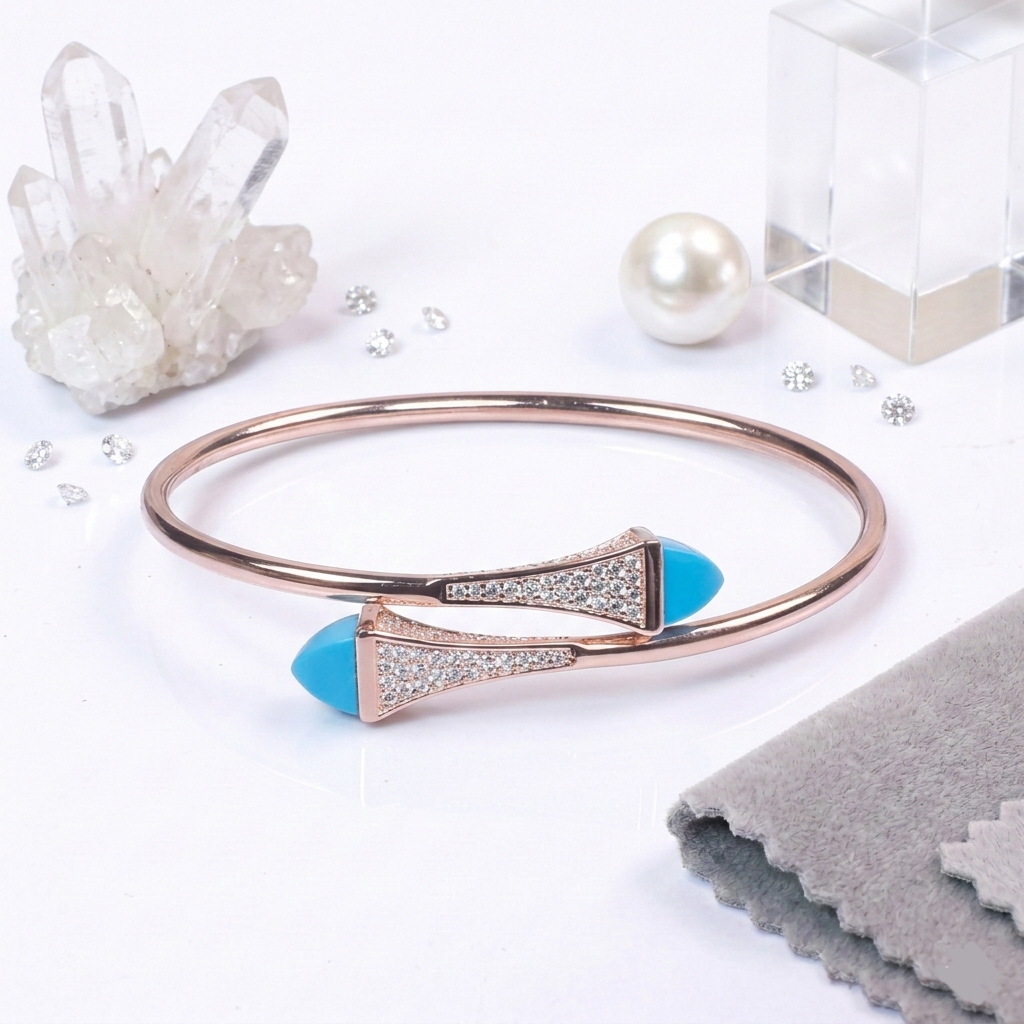 PREMIUM 925 SILVER ROSE GOLD POLISH EXCLUSIVE FIROZA STONE BRACELET