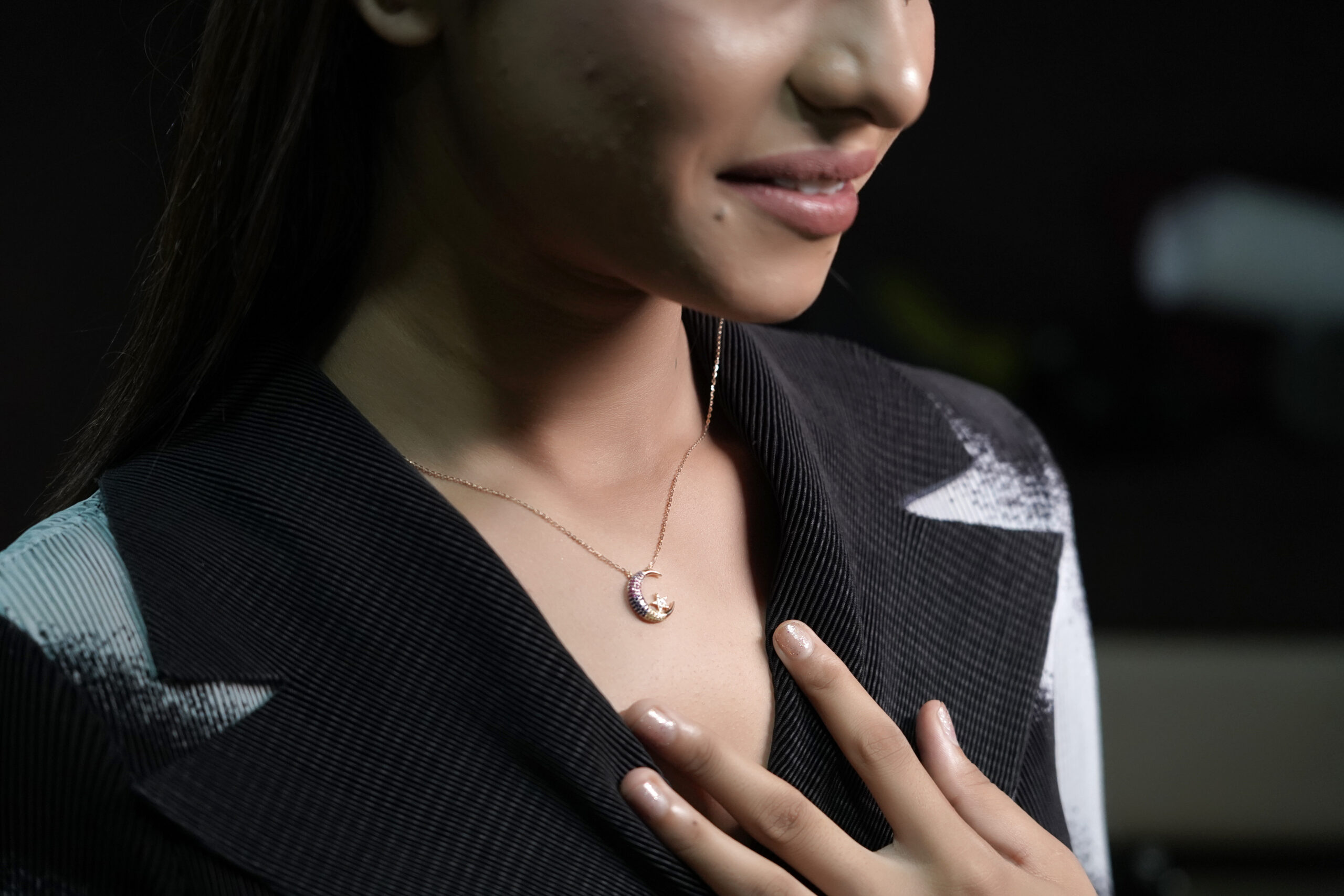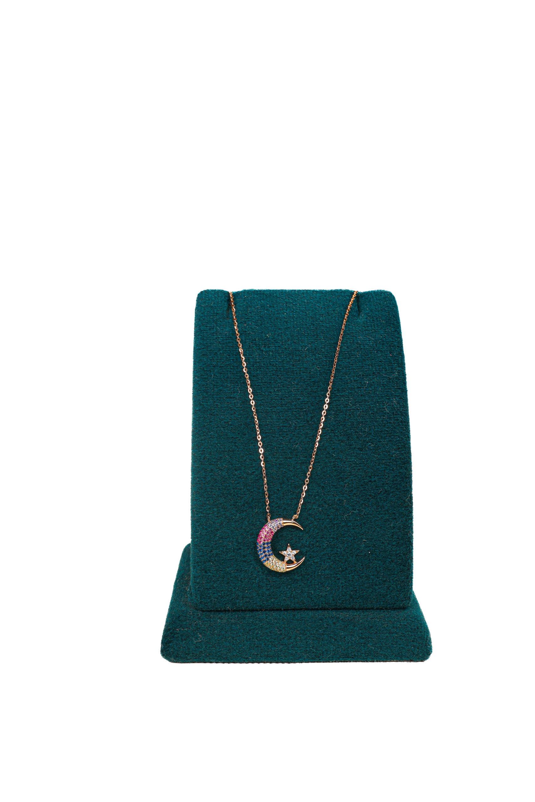 Be the first to review “PREMIUM 925 SILVER ROSE GOLD POLISH MOON CHAIN PANDANT WITH COLOR STONE”