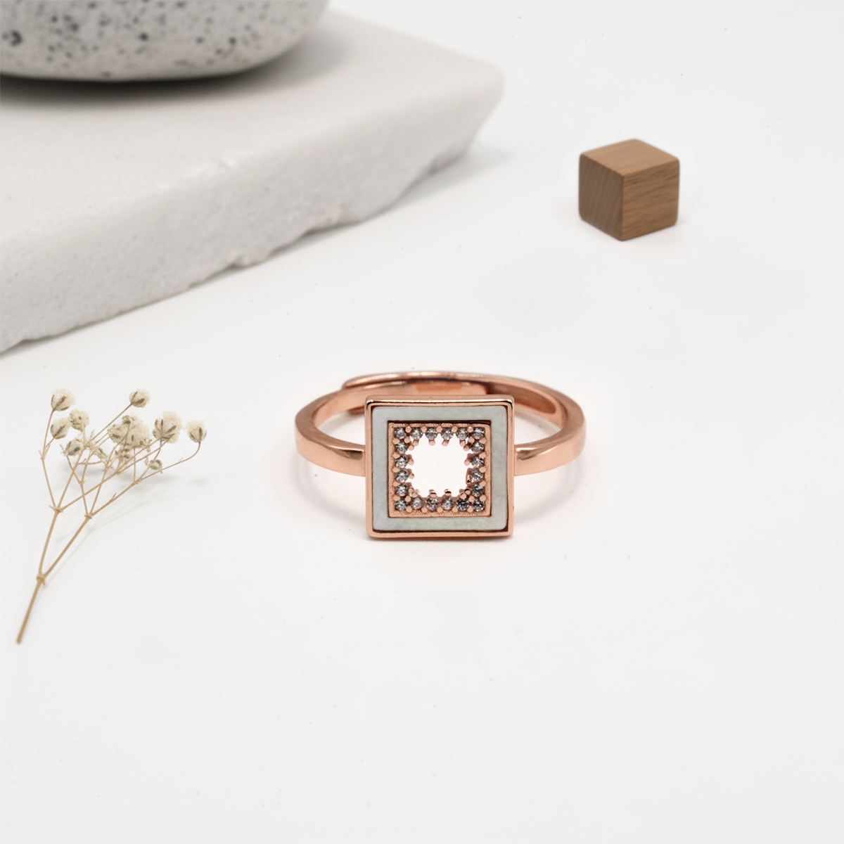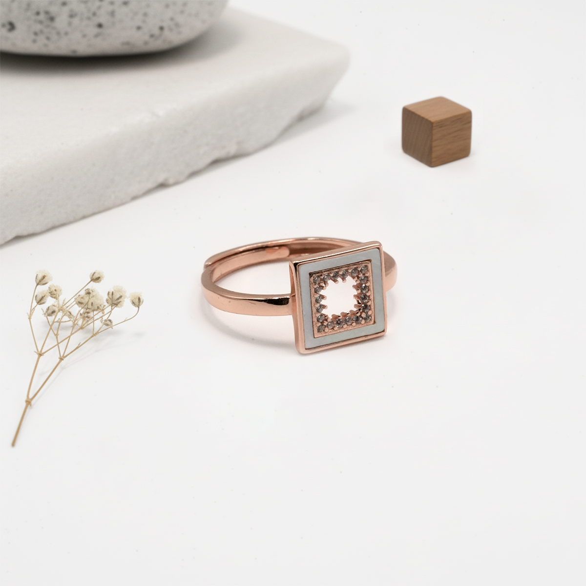 PREMIUM 925 SILVER ROSE GOLD POLISH MOP WOMEN’S RING – SIZE FREE