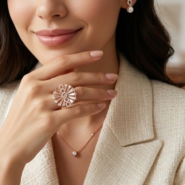 This AARYA Pure Silver Women’s Ring is beautifully crafted to reflect timeless elegance and fine craftsmanship. Made from premium quality 925 silver, it features a smooth, polished finish that enhances its natural shine. Designed for comfort and durability, this ring is perfect for daily wear while also complementing festive and special occasion looks with effortless grace.