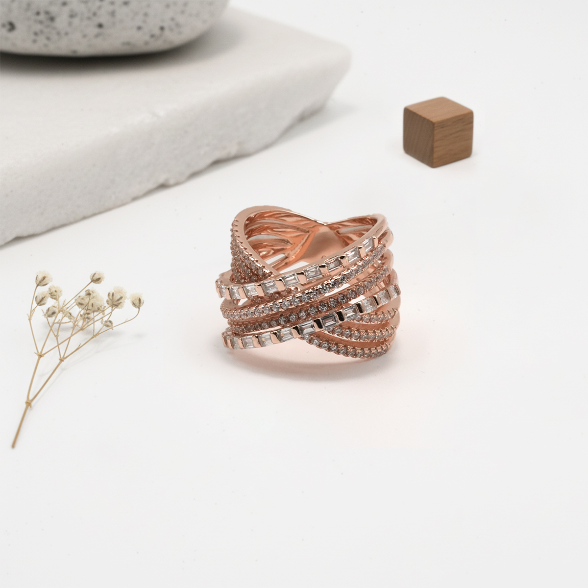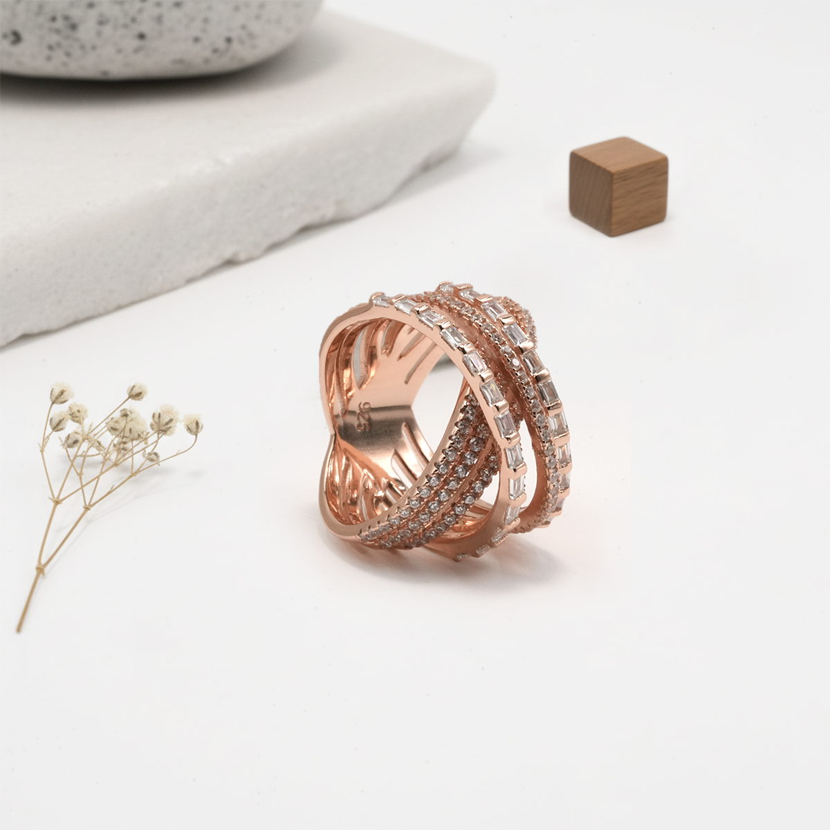 PREMIUM 925 SILVER ROSE GOLD POLISH BRIDAL RING – 15