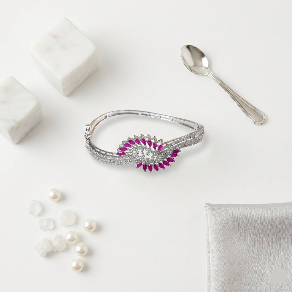 Elegant and timeless, this AARYA Pure 925 Silver Bracelete is crafted from premium quality 925 silver with a smooth, polished finish. Lightweight and comfortable, it is perfect for daily wear as well as special occasions. Wear it alone or stack it with other Bracelete for a graceful look.