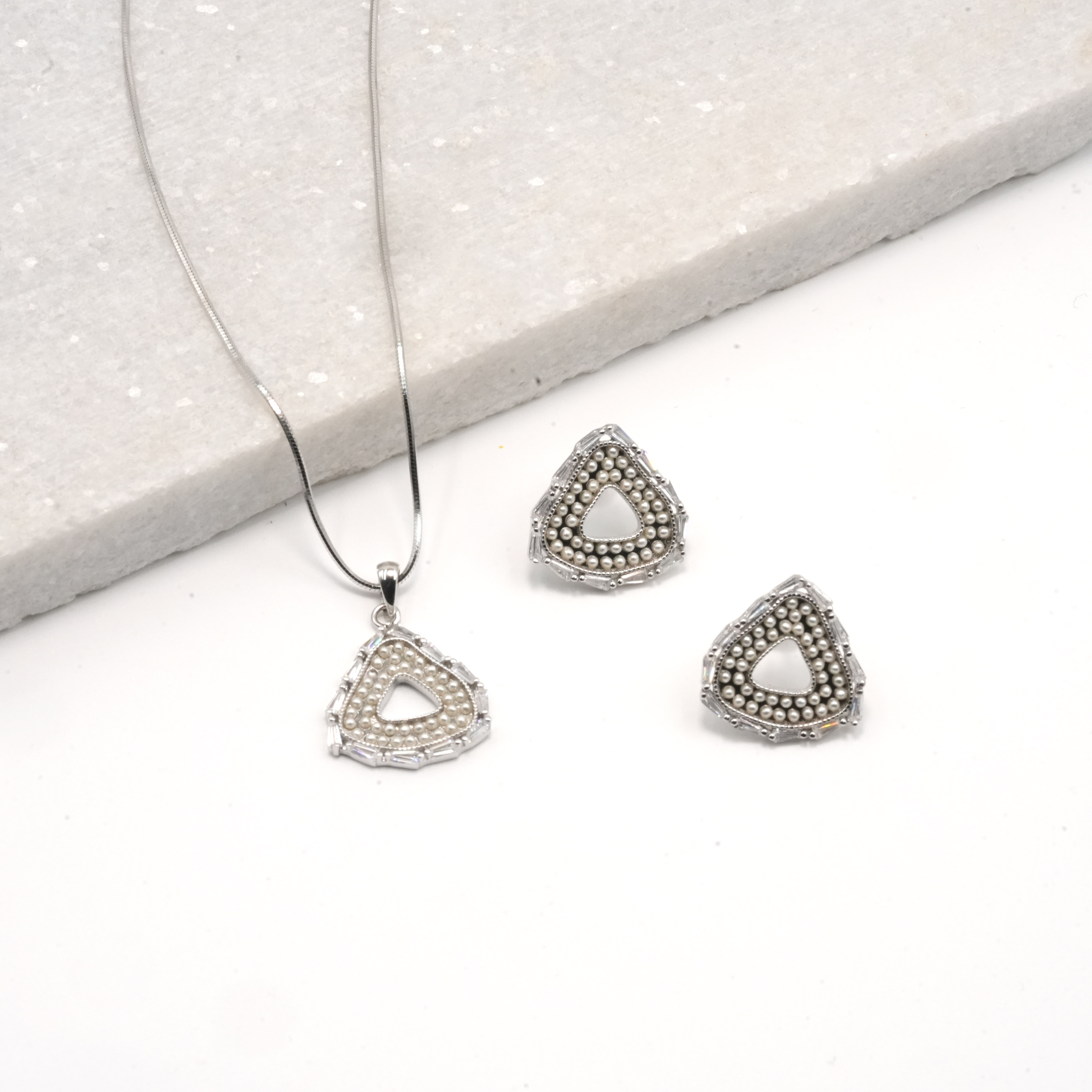 PREMIUM EXCLUSIVE 925 SILVER PEARL PENDANT SET
