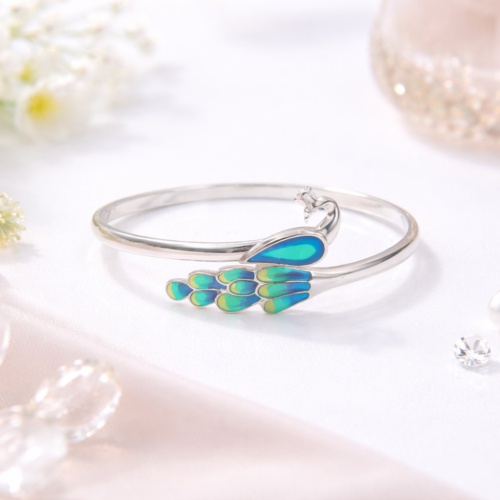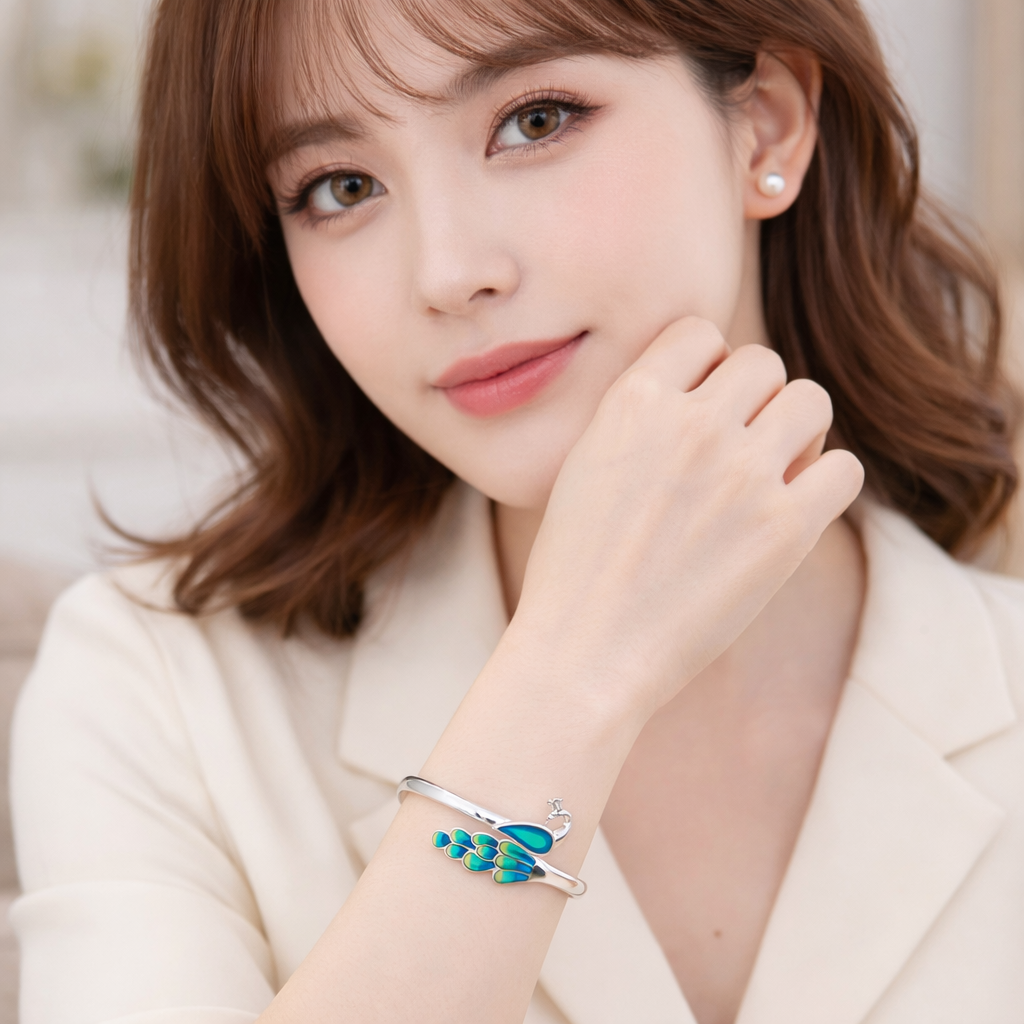 PREMIUM PEACOCK 999 PURE SILVER WITH ENAMAL BRACELETE